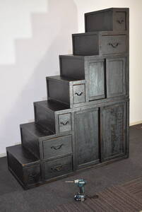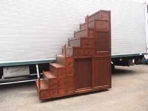 X1525◆H210cm×W191×D92(cm)◆アンティーク◆特大◆重厚な大きい階段箪笥◆飾り棚 陳列棚 展示台 水屋箪笥 タンス レトロ伊