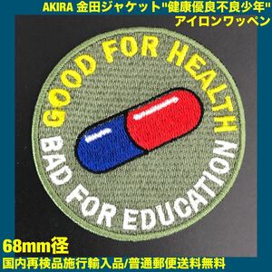 AKIRA 金田 健康優良不良少年 約6.8cm カーキ色生地 アイロンワッペン 検) アキラ 鉄雄 大友克洋 刺繍 - sonntagpatches 定型郵便送料無料