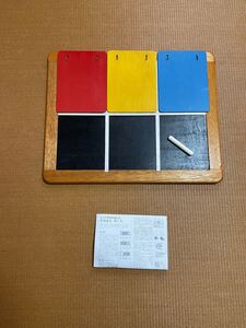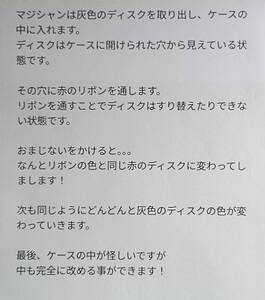 ★《カラーチェンジングディスク》3枚の灰色のディスクを示しケースに入れ3色のリボンを穴に通すとその色にディスクが変化する