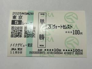 ヴォートセレスト「メイクデビュー東京」(新馬) の現地購入単勝馬券