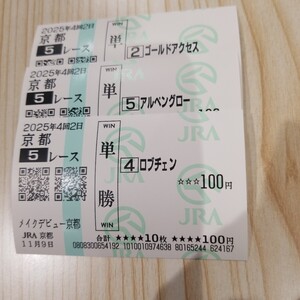 即決! ロブチェン おまけ アルペングロー メイクデビュー京都 現地的中単勝馬券 京都競馬場