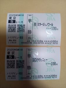 現地購入単勝馬券 メイクデビュー東京 ミラージュノワール ラヴェニュー