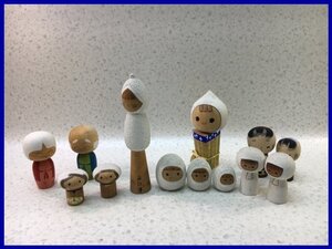 V8995S ★創作こけし・近代こけし★丸山峰月「幸せ」/わらぐつ/雪など計13体★伝統工芸品・近代こけし・置物【現状品】