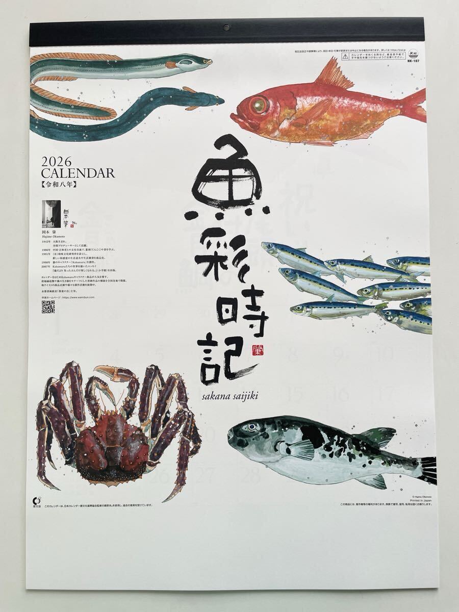 ☆2026年・令和8年版 壁掛カレンダー☆ 魚彩時記 ~岡本肇作品集~ 46/4切 13枚 四季折々の魚の世界