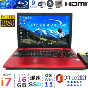 即使用可能 Windows11Pro Office2021 Quad Core i7 新品SSD512GB メモリ16GB FUJITSU LIFEBOOK Blu-ray Webカメラ 即決特典 ノートパソコン