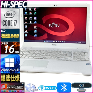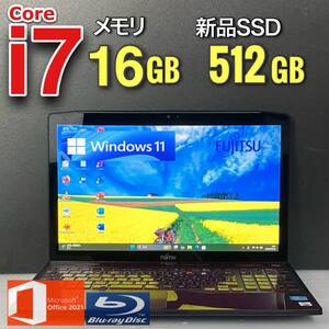 高速i7【メモリ16GB/爆速新品SSD512GB】Core i7-3.20GHz/人気富士通ノートパソコン/Win11/Office2021/Blu-ray/Webカメラ/Wi-Fi/即決特典