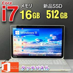 タッチパネル☆驚速i7【メモリ16GB/爆速新品SSD512GB/Core i7-3.40GHz】Windows11/Office2021/Bluetooth/Webカメラ/人気東芝ノートパソコン