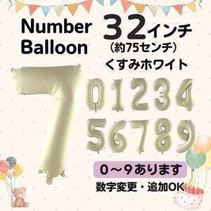 くすみホワイト 7 数字 ナンバーバルーン 誕生日 お祝い 記念日 32インチ パーティ イベント 装飾 行事 風船 グッズ