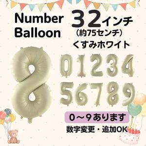 くすみホワイト 8 数字 ナンバーバルーン 誕生日 お祝い 記念日 32インチ 風船 行事 イベント パーティ 装飾 グッズ