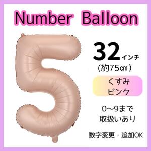 くすみピンク 5 数字 ナンバーバルーン 誕生日 お祝い 記念日 32インチ グッズ 行事 イベント パーティ 風船