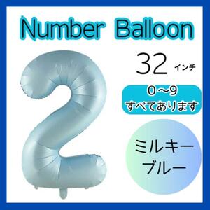 ミルキーブルー 2 数字 ナンバーバルーン 誕生日 風船 お祝い 記念日 32インチ 行事 イベント 飾り付け 装飾 パーティー