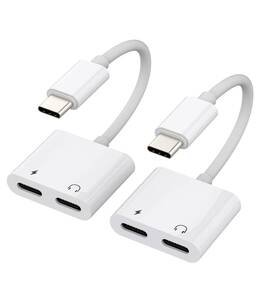 タイプc イヤホンジャック 変換器 2in1 同時 きゅうそく充電 分岐 アダプタ(2パック) …_C_5927