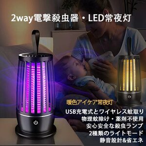 2way 電撃殺虫器 LED常夜灯 電気蚊取り器 USB充電式 殺虫灯 殺虫ライト 吸引式捕虫器 捕虫器 誘虫灯 蚊よけ 蚊除け 虫除け