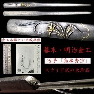 スライド式の大珍品!巧手「高本秀宗」の秀逸作 割笄 上工「田中清寿」が門人 まさしく幕末金工の傑作【安値出発】d044