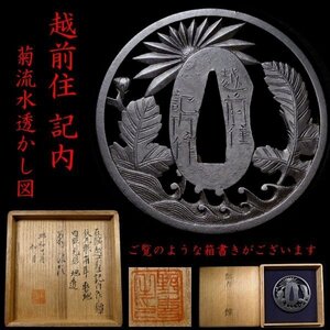 これぞ記内の最高峰!「越前住 記内」 「菊流水透かし図」 材質・細工共に最上級クラスの名作鍔 【安値出発】d043