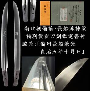 【特別貴重刀剣・大名登録】南北朝時代の名工・長船兼光の在銘・貞治裏年期入りの刀身彫り見事な脇差:「備州長船兼光 貞治五年十月日」