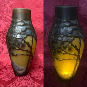 【美品】エミール ガレ 花瓶 フラワーベース 西洋 アンティーク Emile Galle 美術品 骨董品 ガラス 高級美術 インテリア おしゃれ 花器