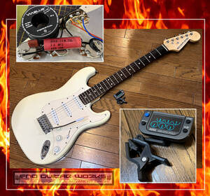 純白ストラトキャスター フルメンテ超低弦高ギター クリスタルサウンド Capco オレンジWコンデンサ ローラーサドル KORG ポリPOLYTUNE付