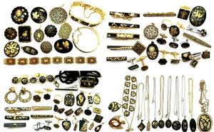 ダマスキナード 約608g まとめ 金象嵌 カフス ブローチ ペンダント ペンダントトップ イヤリング ブレスレット タイピン 他